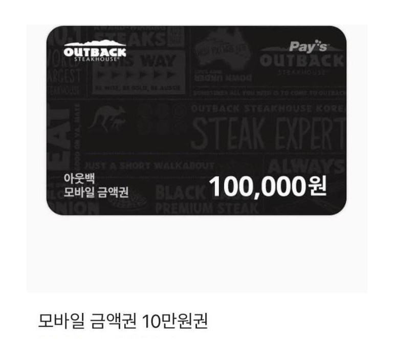 • 아웃백 기프트카드 10만원권